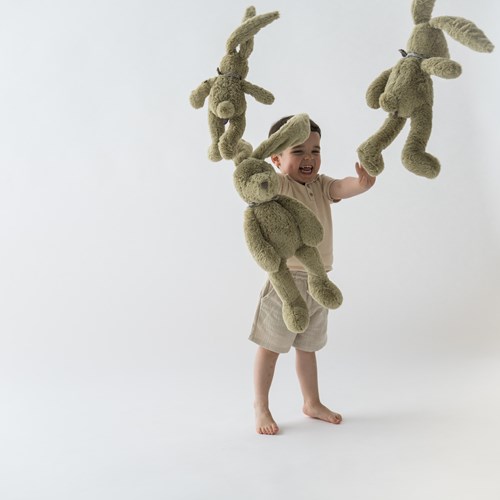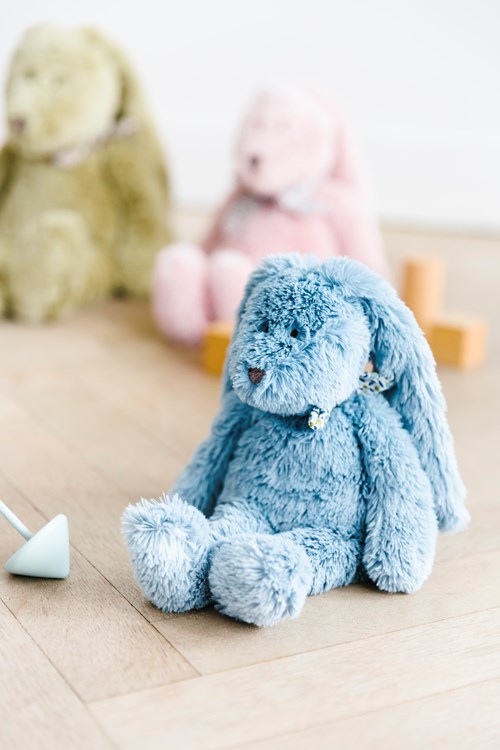 Flor & Flore were created in 2014. The lovely twin brother and sister are our very own modern take on the classic Neela bunny. These hoppy twins have a friendly (and very curious) soft rounded nose, a brand-new textured ribbon and a new furry outfit. We’ll bet you won’t be able to resist running your fingers through Flor & Flore’s cuddly fur! And meanwhile, another playful little brother Flo joined the family. Available is several colours & styles. Always completed with a cute textured ribbon in a matching colour. Discover Flor & Flore and their everlasting softness!