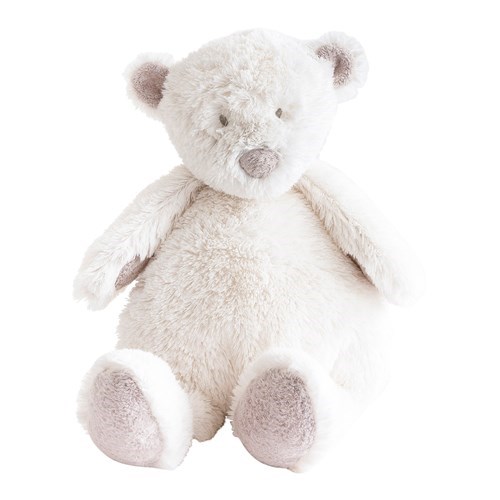 Floppy, soft-bellied toy bear for use as hugger.