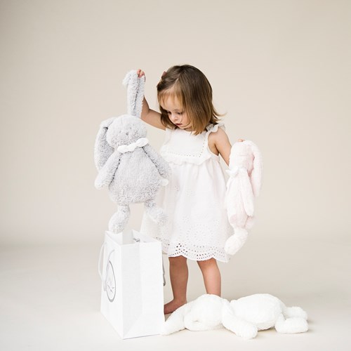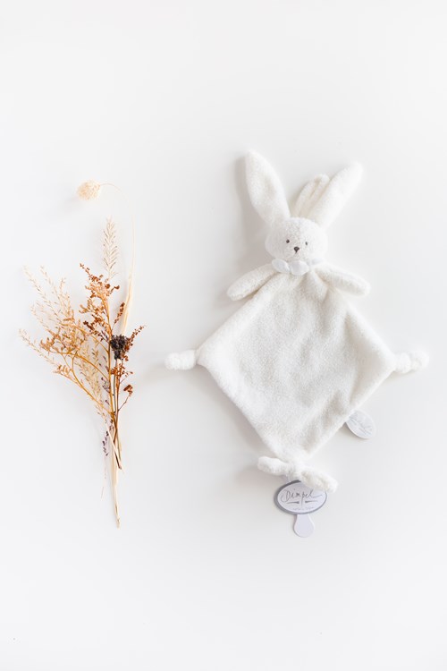 Rencontrez notre adorable petit lapin, Ella : la nouvelle petite soeur de la famille Dimpel, qui est très mignonne. Sa fourrure douce et son rembourrage en font le parfait compagnon de câlins. Le doudou contient nos deux matières les plus douces. Bienvenue Ella !