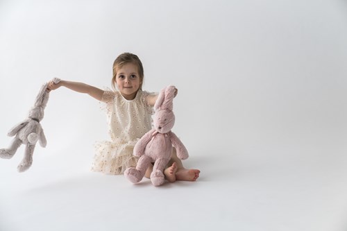 Neela, opnieuw een Dimpel klassieker, uit 2004. Daarmee bewijst ze haar tijdloze schoonheid, eenvoud en zachtheid. Neela is een toegewijd konijntje dat moeiteloos een traan in een lach omtovert. En dat doet ze steeds in stijl, met haar chique satijnen lint.
